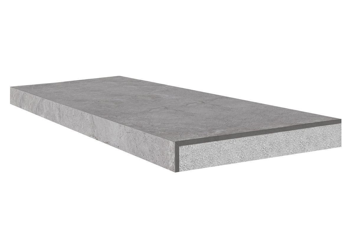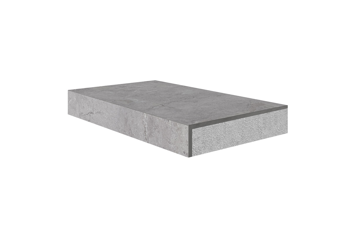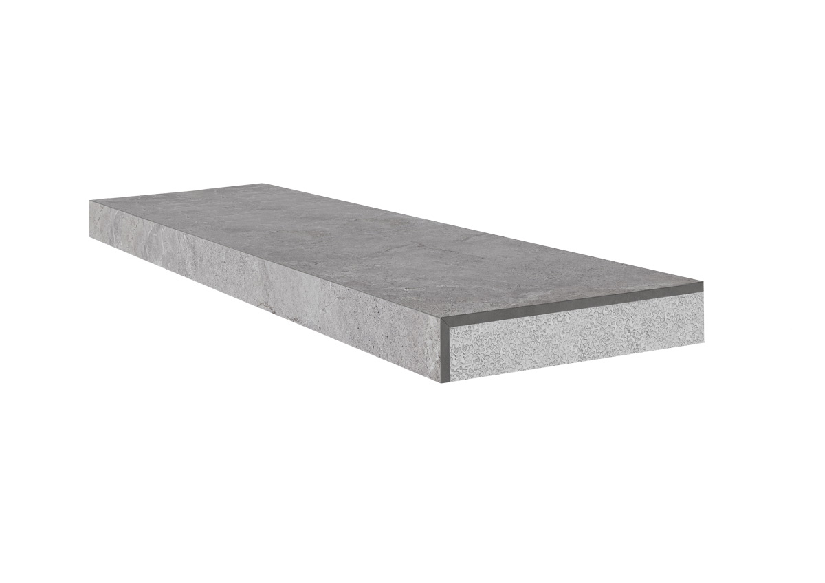 Stopnie schodowe DuoProStep to nierozerwalne hydrauliczne połaczenie warstwą sczepną FlexSil ceramiki o grubości 1cm z kompozytem SilCrumb.